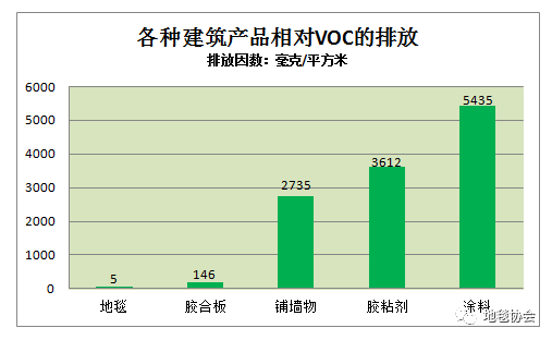 室內(nèi)空氣質(zhì)量中的污染物,包括化學(xué)成分、微觀粒子和細(xì)菌、霉菌孢子,其中的化學(xué)成分就是“易揮發(fā)有機(jī)化合物”(VOC),對(duì)地毯的化學(xué)揮發(fā)物,以美國(guó)環(huán)境保護(hù)署(EPA)組織的試驗(yàn)檢測(cè)案例計(jì)算:建筑物內(nèi)地毯VOC排放最少,其它排放因素高出地毯30到1000倍。