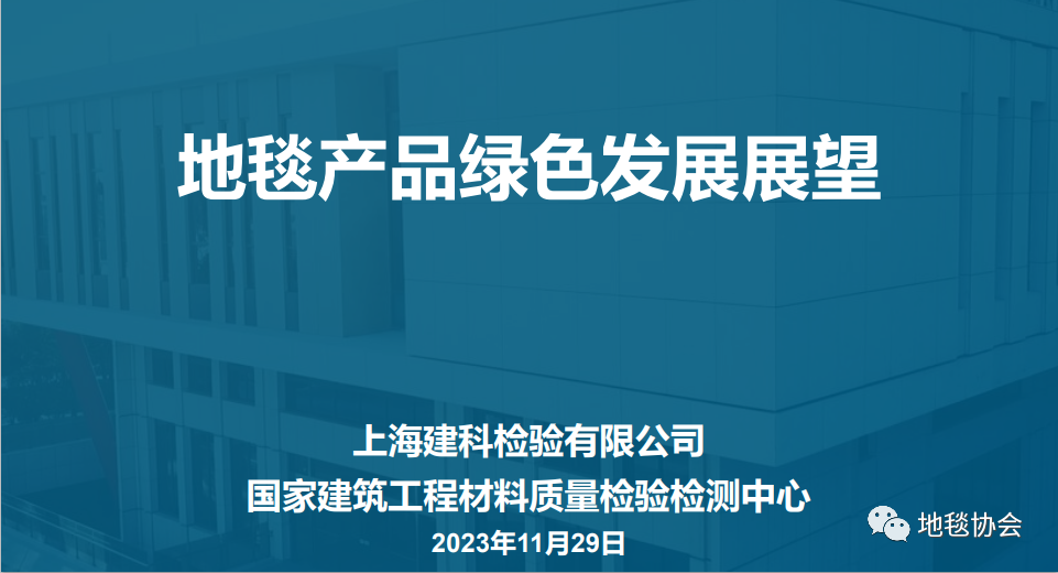 會議第三項內容,由上海建科檢驗有限公司,國家建筑工程材料質量檢驗檢測中心顧嘉赟主任講解綠色發展和綠色產品,地毯有害物質釋放情況,主要污染物及溯源關系,地毯在綠色發展中的機遇。